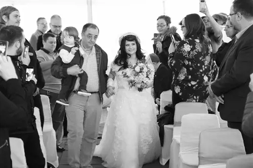 To James Arthur’s ‘Say You Won’t Let Go,’ Tasha walked up the ‘aisle’ of a marquee that as chance would have it, had just been put up for another Hospice event, to be given away by her father David and her and Daniel’s 19-month-old son Alaric in a poignant service led by Hospice Chaplain Ray Ashley-Brown.