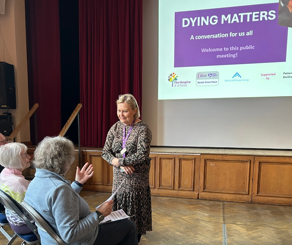 We were delighted to help facilitate a public meeting in Berkhamsted, ‘Dying Matters: A Conversation for Us All’ to help people consider the importance of having open and honest conversations with their family, friends and healthcare professionals about what matters to them now and if they were unwell or dying in the future. We were joined by clinicians from Rennie Grove Peace Hospice and Rothschild House Group.